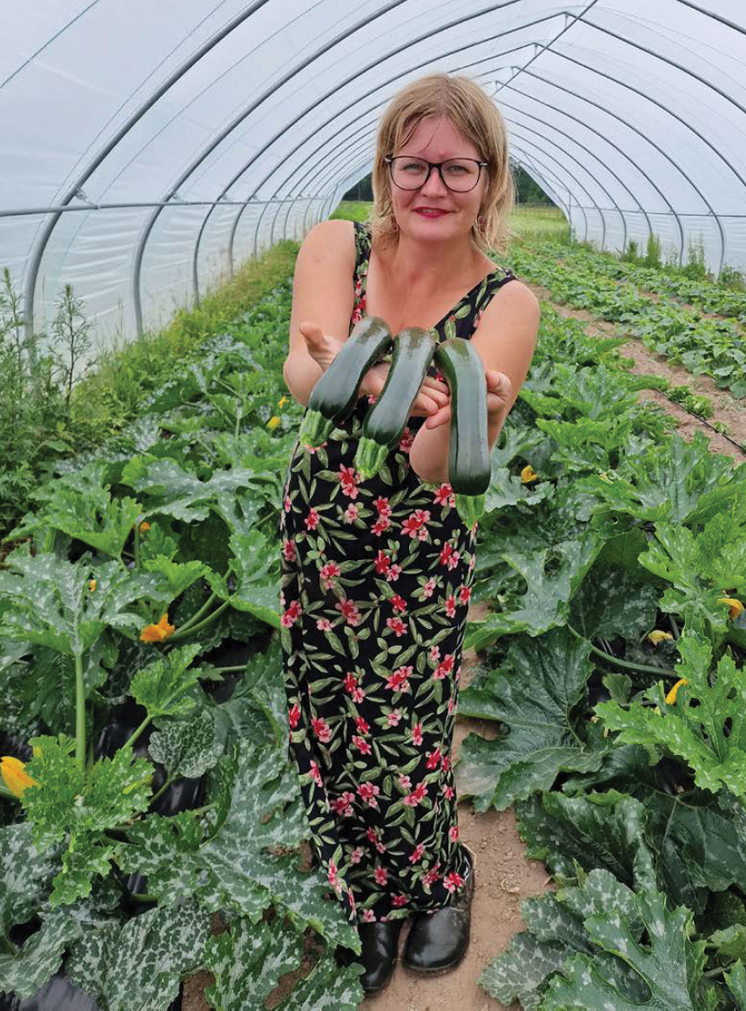 Jo mazāka platība, jo efektīvāk jāstrādā, lai pēc iespējas mazāk paliek pāri. Piemēram, ko darīt ar tiem gurķiem, kas kādā brīdī ražo tik daudz, ka paliek pāri? Kaut kas ir jāizdomā. Un tad mums radās pirmais gurķu pulveris. To var pievienot biezpienam vai krējuma sieriem. Sanāk krēmsieriņš. Mums ir arī marinēti gurķi un gurķu salātiņi. Tomātus un gurķus arī skābējam, tāpat kāpostus, ziedkāpostus, bietes. Ir tomātu sula, kaltēti garšaugu pulveri, sīpolu pulveris, ķiploku pulveris, biešu pulveris, kaltētas selerijas, upenes, baziliks, tomāti, pipari. Labos sēņu gados arī sēņu pulveris, gaileņu pulveris un meža melleņu pulveris. Ir arī tējas. Paši ražojam sukādes ‒ tā ir Jura ideja.