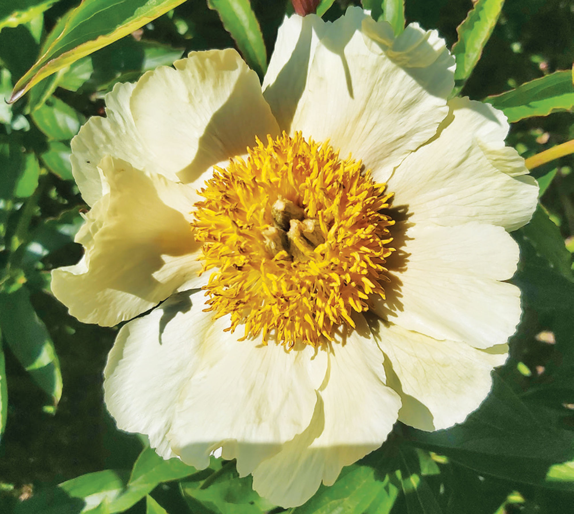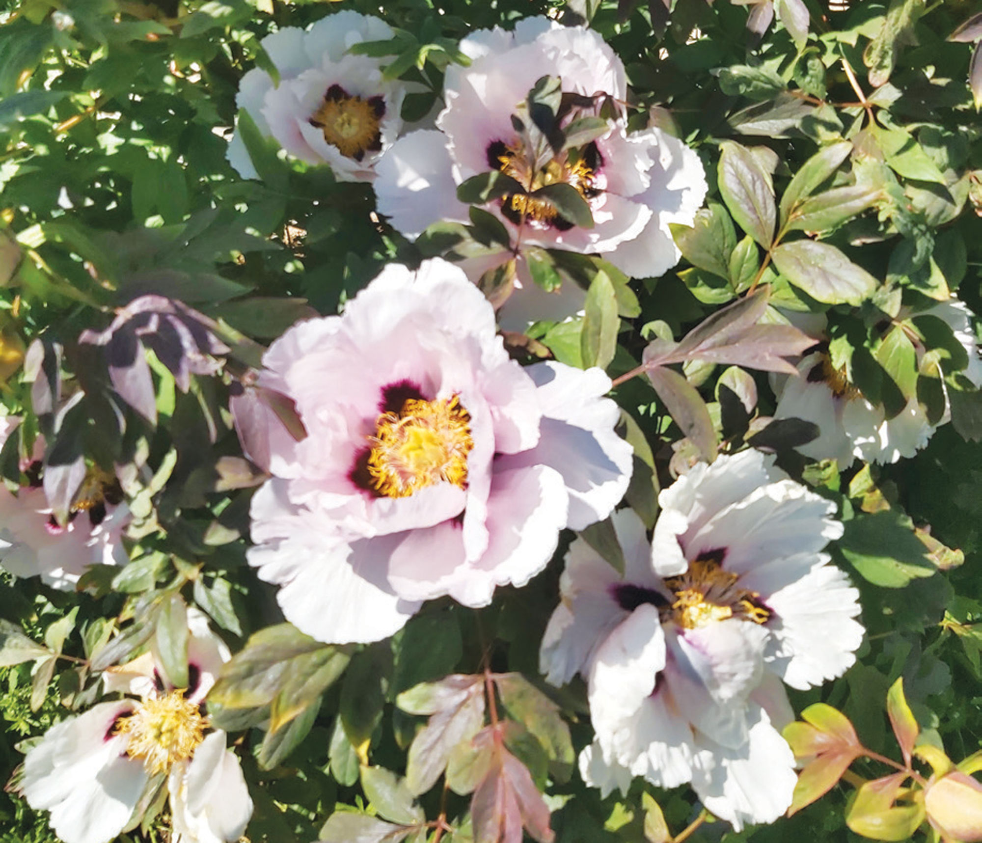 Krūmpeonija (Woody) ‘Angel Bernhard’. Izveidota, aklimatizējot dendrologa Artura Mauriņa sējeni 3. paaudzē, piemērota mūsu mitrajam piejūras klimatam. Izveidota, lai sasniegtu maksimālo salizturību un salcietību. Kolekcijā vēl izvērtējama pēc visiem ziedlapu substances un citiem parametriem.