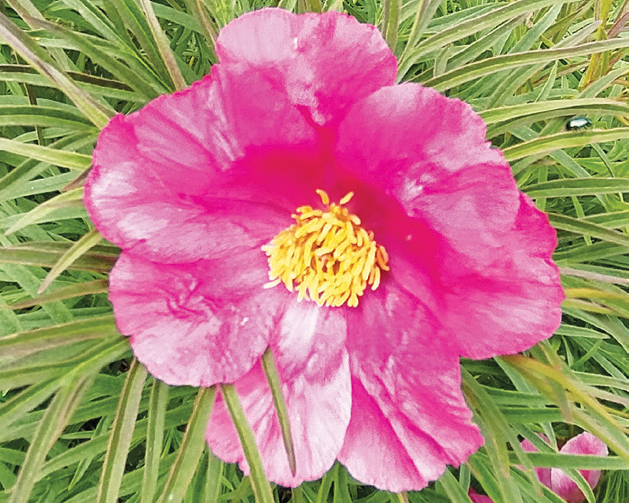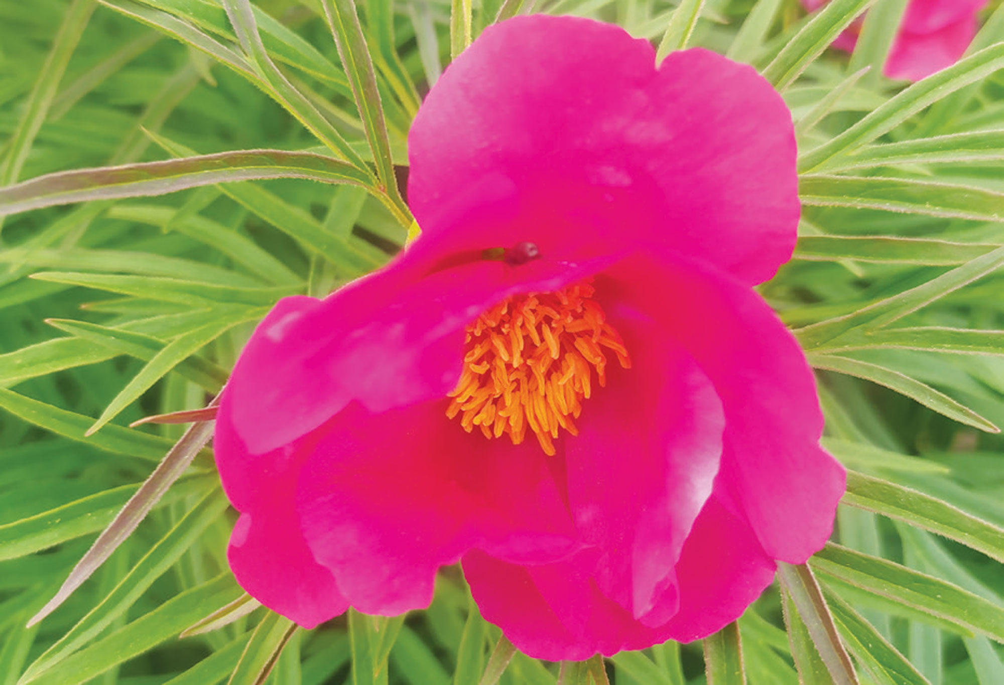‘Little Red Gem’. Tipiska P. tenuifolia. Tautā mīļi saukta par diļļu, burkānu jeb šaurlapu peoniju. Kolekcionāra stādījumā apskatāms kompakts, ovālas formas 40–50 cm augsts cers.