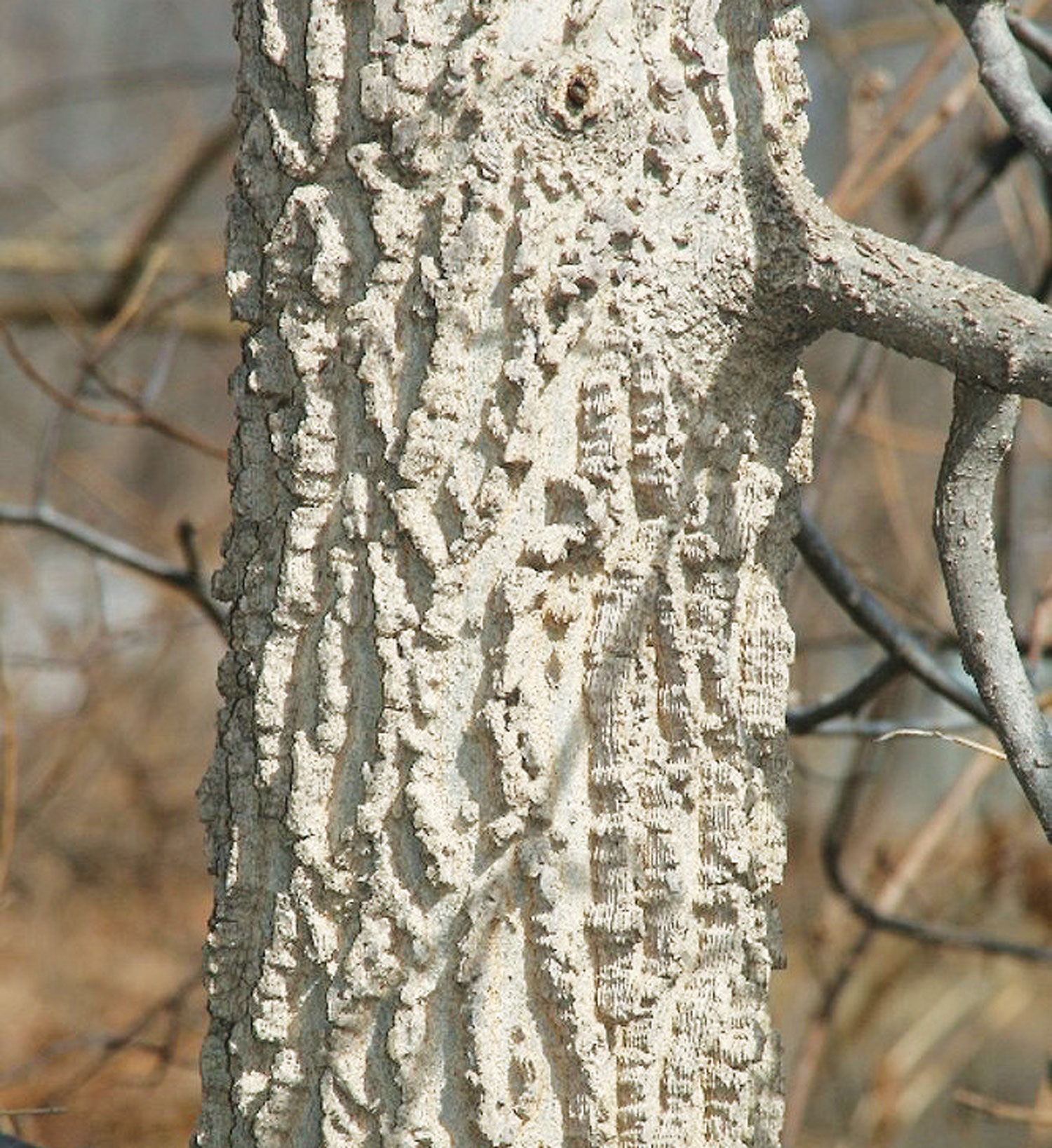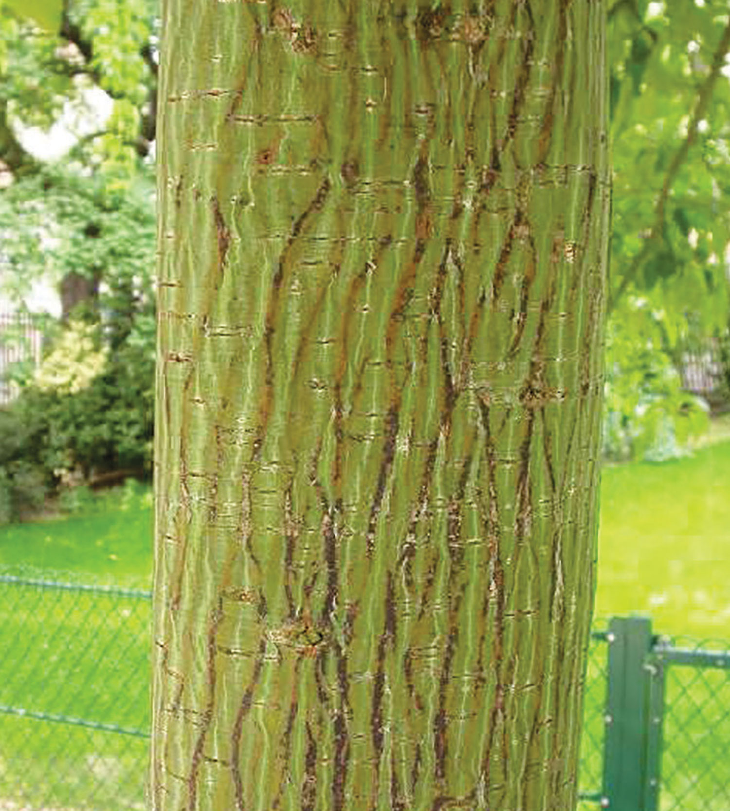 Dzelzskoks (Celtis occidentalis) un zaļmizas kļava (Acer tegmentosum) savu skaisto izskatu parādīs pēc kāda laika, kad stumbra diametrs sasniegs vismaz 6–7 cm.