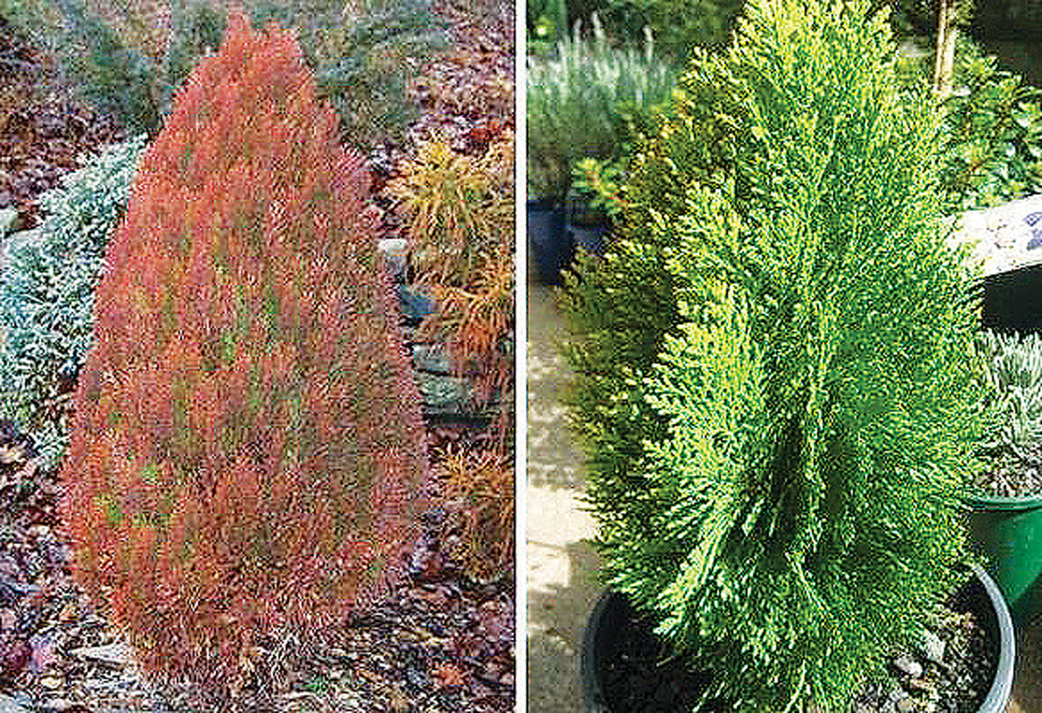 Papildinot skujeņus, kas nemaina krāsu un paliek spilgti zaļi, ar tiem, kas maina, var dārzu ziemā padarīt krietni izteiksmīgāku.
