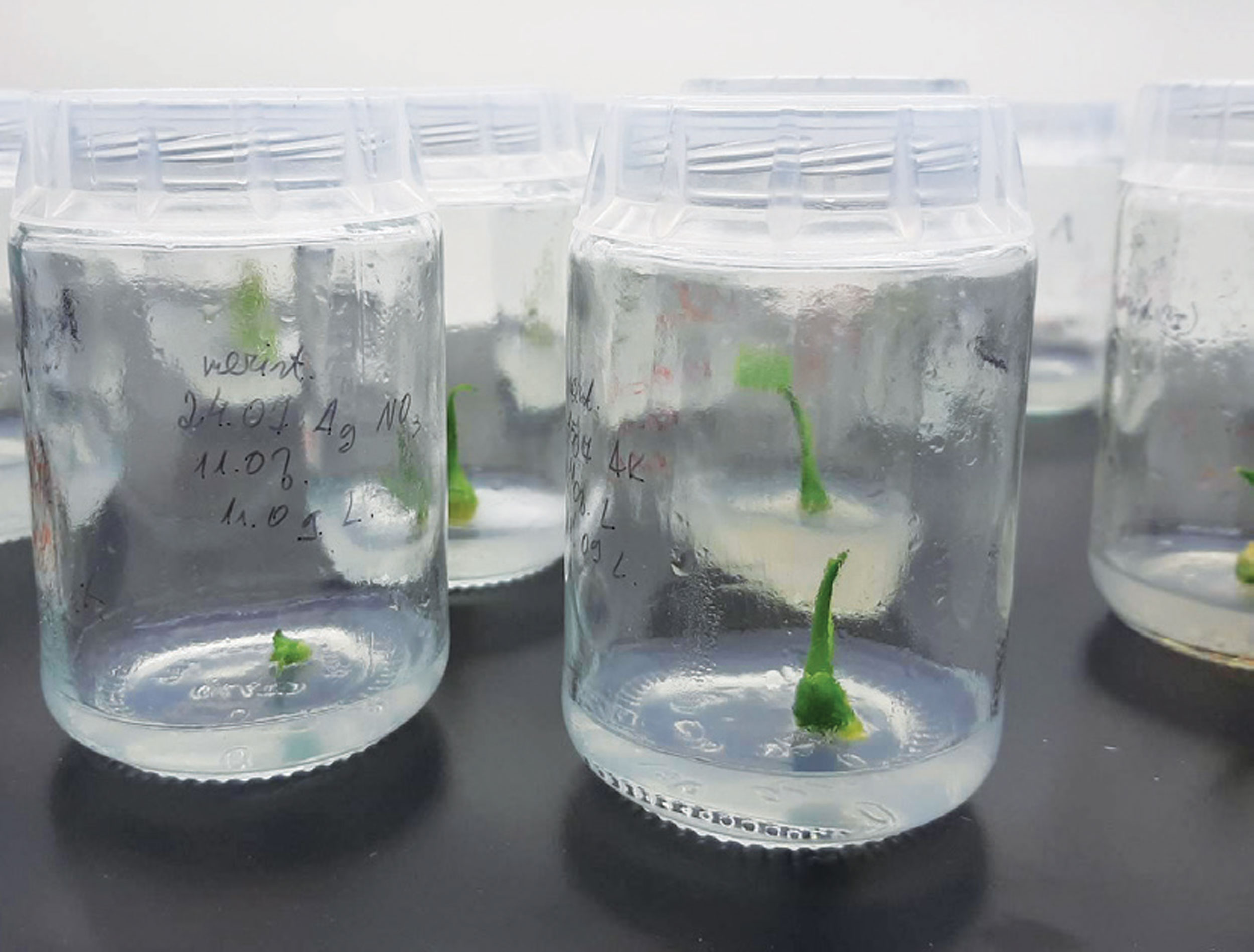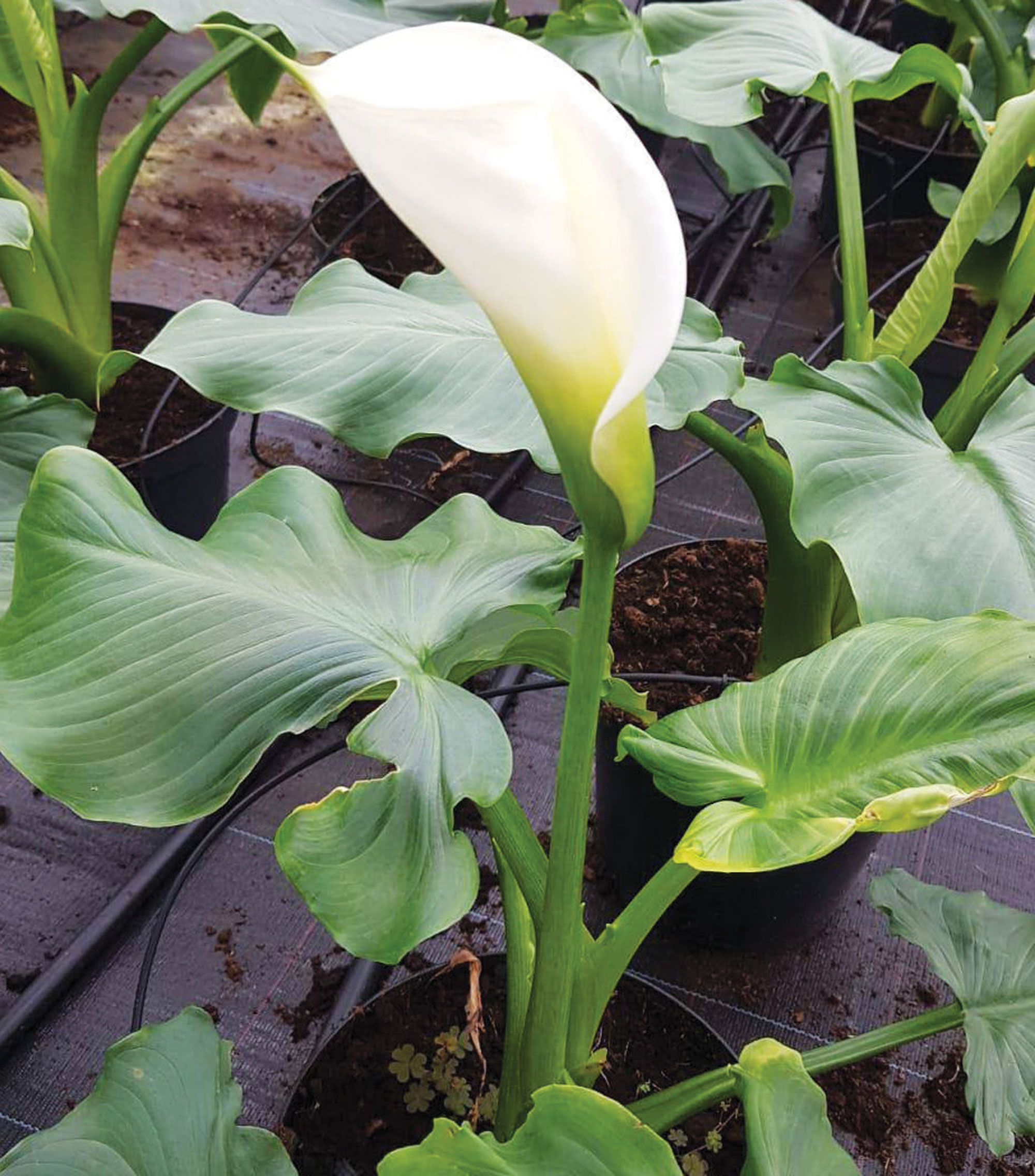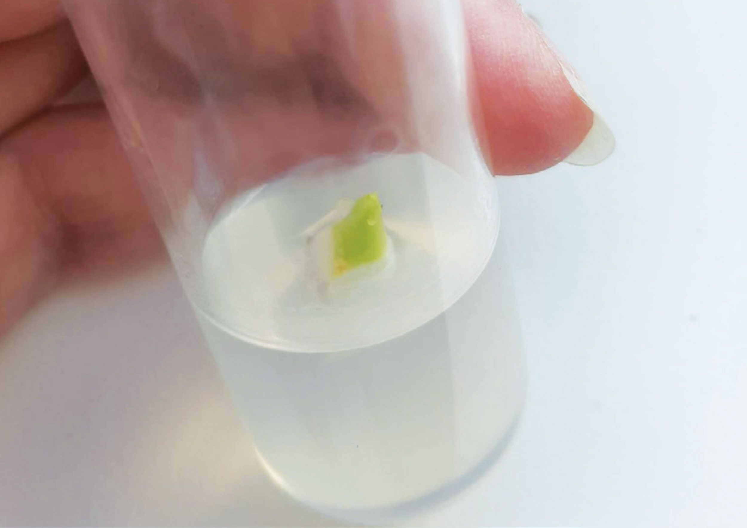 Kallu meristēma, kuru izmanto in vitro kultūras uzsākšanai. Uzsākta kallu in vitro kultūra aptuveni pēc četrām nedēļām. Aptuveni trīs mēnešus veci kallu dzinumi.