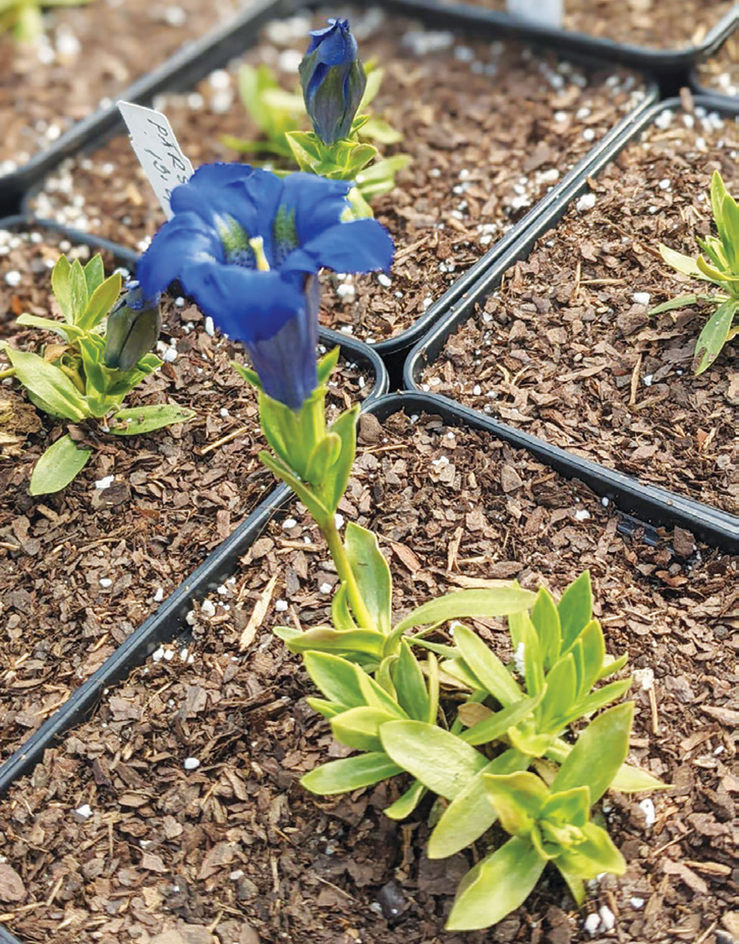 Genciāna uzziedējusi stādaudzētavā Puķu Lauki.