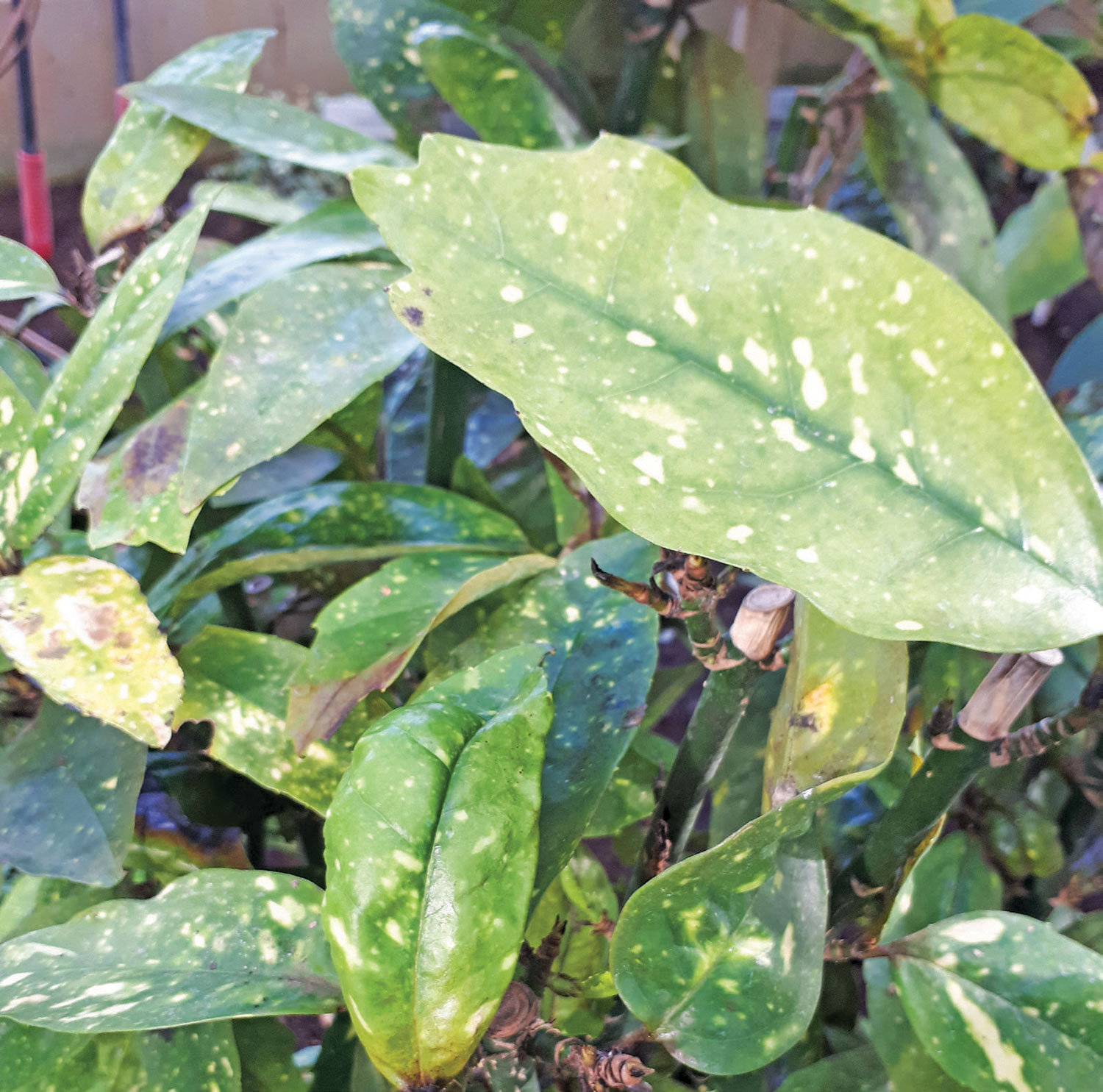 Japānas aukuba (Aucuba japonica) ir grimoņu (Cormaceae) dzimtas pārstāve, savvaļā aug Austrumāzijā. Telpās ziedu nemēdz būt, bet augs izceļas ar raibām lapām. Japānas aukuba ir vēso telpu augs, kas labprāt no rudens līdz pavasarim vēlas augt zemākā par plus 18 °C gaisa temperatūrā. Tam nepieciešama gaiša līdz saulaina vieta, bet neder atrašanās tiešos saules staros. Vasarā labi jūtas, izlikts dārzā. Telpās izaug aptuveni 1,5–2,0 m garš. Labi padodas apgriešanai, tāpēc iespējams izveidot sev tīkamu vainaga formu. Vidēji viegli sakņojas lapainie galotnes spraudeņi, kurus griež un sakņo pavasarī, vasarā. Japānas aukuba necieš pārāk mitru augsni, labāk aplaistīt mazāk nekā pārlaistīt. No pavasara līdz rudenim augu mēslo katru nedēļu. Japānas aukubu audzē dažādos substrātos, to maisījumos, kā arī var stādīt tikai bagātinātā kūdrā. Jāsargā no tripšu uzbrukumiem.