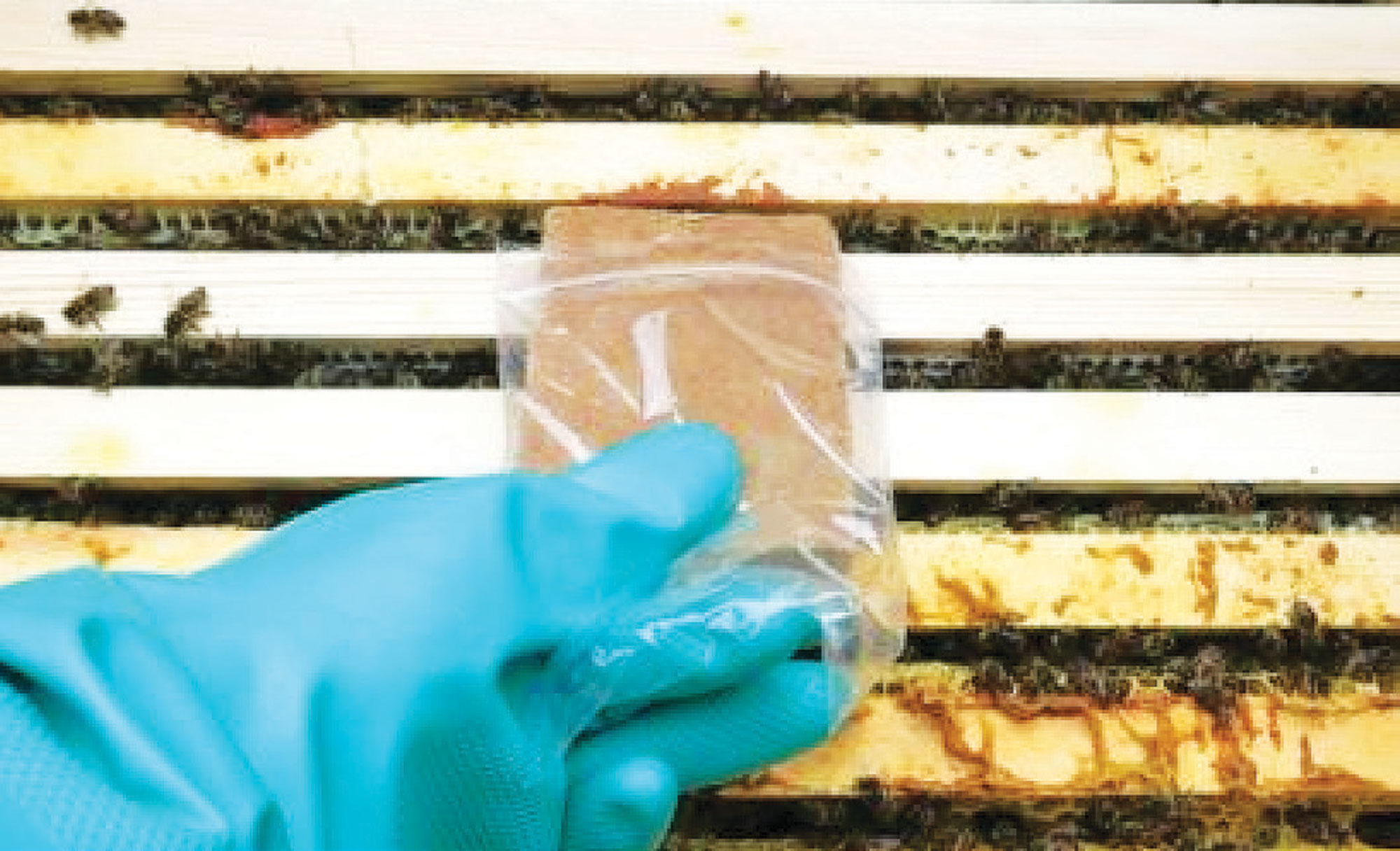 Darām tā. No būvniecībā izolācijai domātajām kokšķiedras plūksnu platēm (lieto arī stropu siltināšanai) izgriež 5x5 cm kvadrātiņus, katru ieliek nelielā polietilēna plēves maisiņā, uzlej 30 ml skudrskābes un maisiņu ātri aizsien. Uzreiz sagatavo visām saimēm nepieciešamo daudzumu.