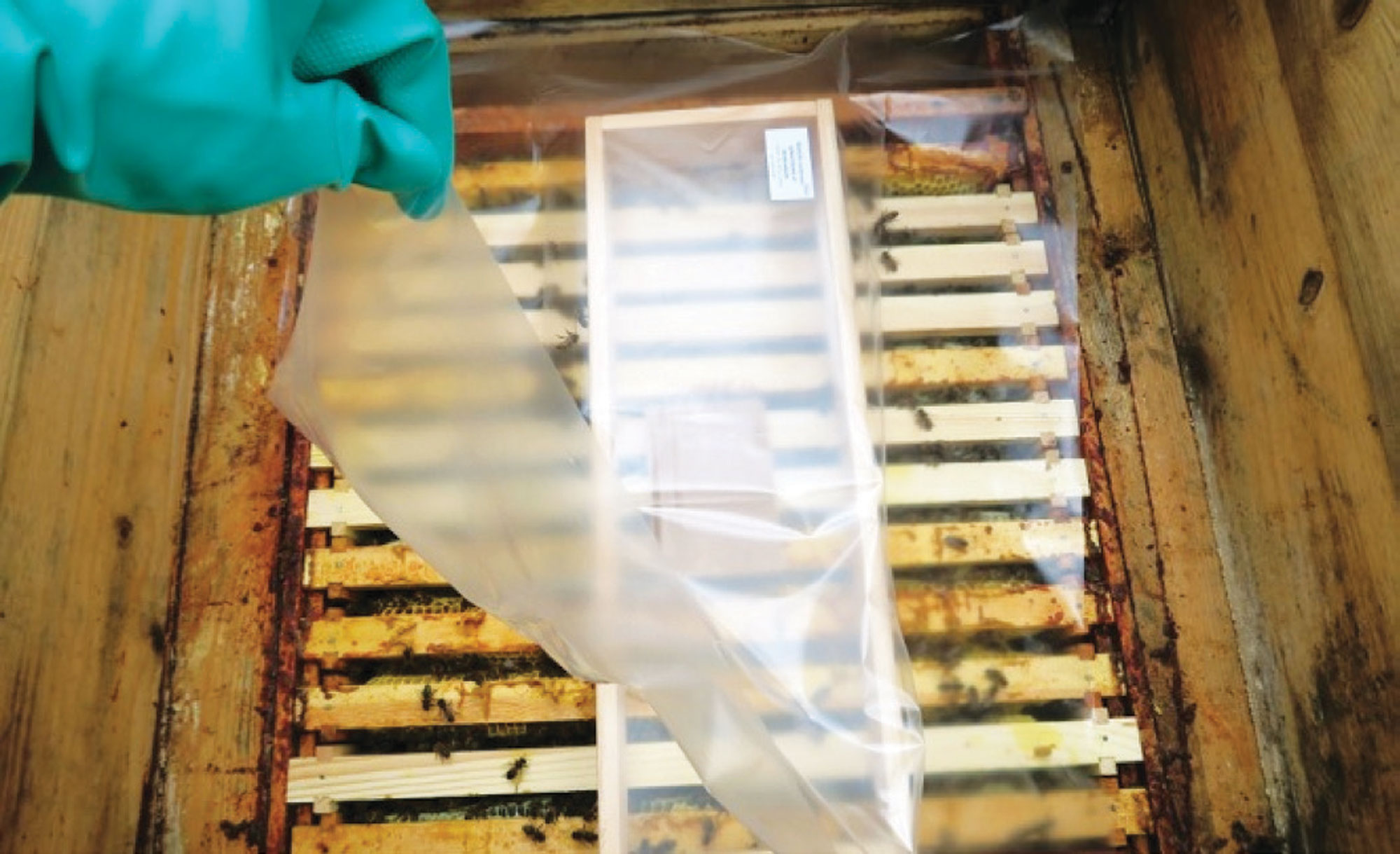 Apstrādā bišu saimes ar skābeņskābi, izmantojot pilināšanas metodi, pēc Latvijas Biškopības biedrības izstrādātajām vadlīnijām (pieejamas www.strops.lv).